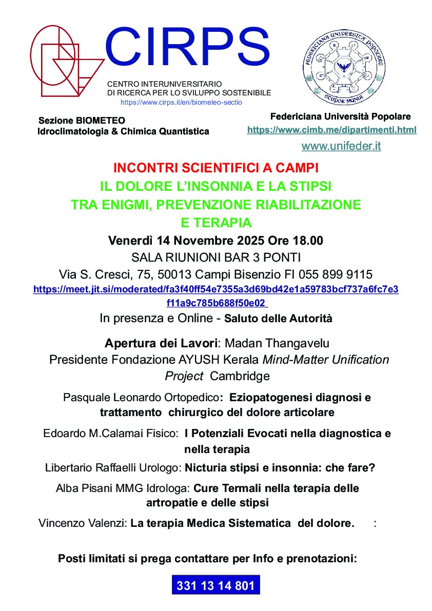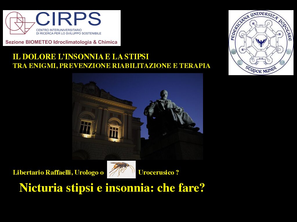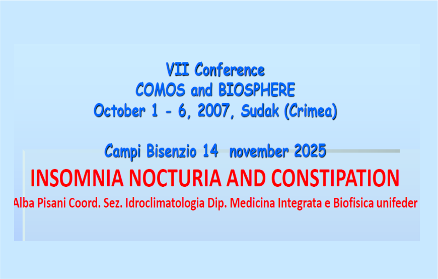 Campi Bisenzio 14 november2025 INSOMNIA NOCTURIA AND CONSTIPATION Coord. Sez. Idroclimatologia Dip. Medicina Integrata e Biofisica unifederSEP