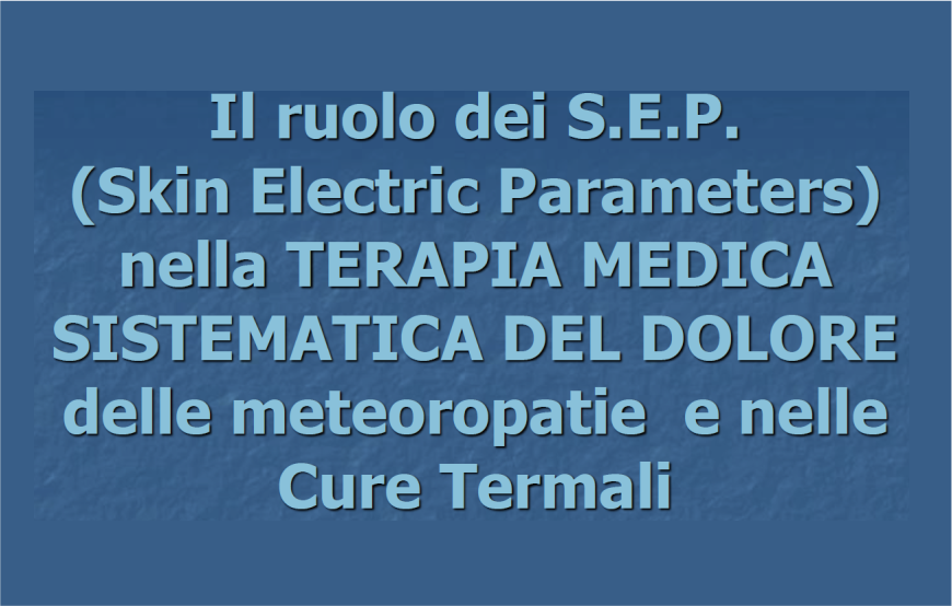 Il ruolo dei S.E.P.(SkinElectric Parameters)nella TERAPIA MEDICA SISTEMATICA DEL DOLORE delle meteoropatie e nelleCure Termali